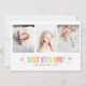 Este anúncio colorido de aniversário de feriados traz espaços para três fotos sobre as palavras "melhor presente de sempre" na frente do cartão. A parte traseira da placa tem espaço para uma foto de solteiro, assim como o nome e as estatísticas de sua nova chegada. É a maneira perfeita e divertida de celebrar o seu melhor presente de sempre neste Natal.