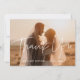 Expresse a sua gratidão e obrigado aos seus convidados pela sua presença e pelos seus belos presentes com este cartão com fotos personalizável com uma tipografia moderna. Moderno, simples e limpo: adote esta design minimalista manuscrita para a sua papelaria de casamento. Cores totalmente personalizáveis.