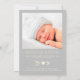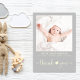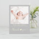 Um simples e doce obrigado neutro de gênero que você anuncia com a moderna tipografia amarela pastel contra o fundo das cinzas suaves. A frente apresenta a foto do seu recém-nascido, o nome do cheio, a data de chegada e as estatísticas de natalidade, e o "obrigado você" escrito em um roteiro amarelo-pastel com um coração juntando as duas palavras. No verso do cartão você pode adicionar uma foto adicional, um obrigado que você envia, e nomes de pais e irmãos sob uma seta de coordenação amarelo pastel com um coração no meio.