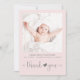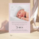 Um simples e doce obrigado de menina que você anuncia o nascimento com a moderna tipografia de cinzas suaves contra um fundo rosa pastel. A frente apresenta a foto de sua menina recém-nascida, o nome do cheio, a data de chegada e as estatísticas de nascimento, e o "obrigado você" escrito em uma escrita de tendências com um coração juntando-se às duas palavras. No verso da placa você pode adicionar uma foto adicional, um obrigado que você envia, e nomes de pais e irmãos sob uma seta de coordenação fofa com um coração no meio.