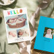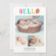"Olá", cartão de nascimento de bebê a cores e bonitinho, com 4 fotos.