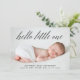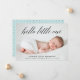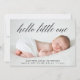 Anuncie seu novo bebê aos amigos e à família com este adorável anúncio de nascimento de uma foto. O anúncio de nascimento de na moda apresenta "alô pequeno" em uma fonte bonito de script, espaços reservados para seu texto e foto personalizados e um padrão de bolinhas azul e preto no verso do cartão.
