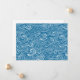 Um intrincado giro e onda são misturados em diferentes tons de blues. Círculos grandes e pequenos azuis rodeados por espirais maiores.
