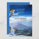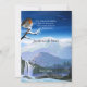 Um memorial de design paisagístico ou um cartão de anúncio de morte infantil com um pino a olhar para as montanhas e as cachoeiras. Você pode usar este cartão para anunciar sua perda ou criar um convite. A parte traseira da placa pode ser usada para mais texto(s), orações ou para adicionar fotos. Desejando-lhe muita força e luz!
