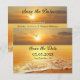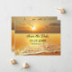 Salve o cartão de data com um pôr do sol de ouro na praia. Na parte traseira, é fácil personalizar o modelo de código QR. Perfeito para um casamento planejado de praia ou destino.