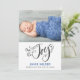 Uma fotografia de anúncio de nascimento azul de um bebê fofo, com uma tipografia artística única. Doce coração termina o fim dos pântanos do tipo. Estilo caligráfico. Adicione sua própria foto criativa.