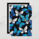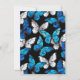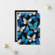 Borboletas realistas, azuis e brancas têm um padrão uniforme em fundo preto.