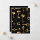 Padrão perfeito de chaves antigas, douradas e silhuetas em fundo preto.