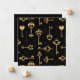 Padrão perfeito de chaves antigas, douradas e silhuetas em fundo preto.