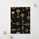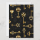 Padrão perfeito de chaves antigas, douradas e silhuetas em fundo preto.