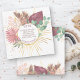 Anúncio de gravidez neutra em termos de gênero com capim boho pampas, folhas de eucalipto, salpicos de aquarela e folhagem em uma mandala solar radiante em ouro. O texto diz "estamos esperando" em tipografia aberta e a modelo está pronta para você adicionar seu anúncio de gravidez e data de vencimento do bebê.