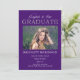 Clássico e elegante, mas elegante, "Parabéns ao nosso Formando" roxo e prateado faux glitter design com uma foto de solteiro na frente com a palavra "Parabéns a Nossa" em uma letra de roteiro ineditável e a palavra "FORMANDO" em falso brilho prateado. Seu nome de formando, escola, ano de aula, data de graduação e planos futuros caem abaixo da foto. A parte de trás apresenta um fundo falso de brilho prateado. Design por Holiday Hearts Design (direitos reservados).