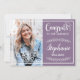 Cartão de anúncio de na moda e graduação moderna com uma grande foto personalizável no lado esquerdo com um texto branco sobreposto com o ano de aula, e um fundo roxo elegante com texto branco que lê "Parabéns ao nosso formando" no lado direito. Facilmente personalizável editando o texto personalizado com o nome do formando e o ano de graduação.