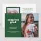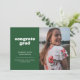 Anuncie a grande conquista do seu formando com este anúncio de graduação simples, mas na moda. Ele apresenta as palavras "felicats formando" em uma fonte branca com estilo retrorreflector em um fundo verde, assim como espaços para uma foto na frente e no verso. O verso do anúncio também tem espaço para uma nota pessoal sobre o formando, incluindo planos futuros.