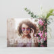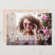 Este convite de tendências e festas de formatura de na moda apresenta uma fotografia do formando, com tipografia no estilo disco retrô para uma visão atualizada de retorno. Há espaço na parte traseira da placa para adicionar todos os detalhes sobre a parte do formando. A frente da placa tem um texto branco de na moda, e a parte traseira da placa é neutra, marrom e branca com uma estrutura de onda de tendência.
