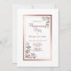 Um elegante convite de festas ouro/cobre bordado floral, com rosa de folhagem floral de ouro quente nos cantos diagonais.