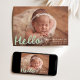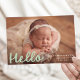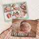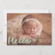 Bem-vindos a sua pequena com este anúncio de nascimento verde da casa de banho encantador com a fotografia horizontal do bebê e um "Olá" alegre numa cobertura de escrita branca manuscrita. Personalize facilmente com o nome do seu bebê, data de nascimento e estatísticas à frente. O verso mostra uma colagem de fotos moderna com seis fotos quadradas e espaço abaixo para incluir nomes familiares ou uma mensagem curta. Este design minimalista, mas brincalhão, é uma maneira perfeita de compartilhar sua alegria com os entes queridos.