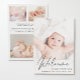 Um cartão moderno para anunciar o nascimento do seu bebê, apresentando sua foto com "Bem-vindo" escrito em cima em um roteiro de na moda. Por baixo adicione o seu nome, data de nascimento e estatísticas de nascimento. No verso, adicione três imagens adicionais e mensagem personalizada.