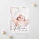 Um cartão moderno para anunciar o nascimento do seu bebê, apresentando sua foto com "Bem-vindo" escrito em cima em um roteiro de na moda. Por baixo adicione o seu nome, data de nascimento e estatísticas de nascimento. No verso, adicione três imagens adicionais e mensagem personalizada.