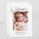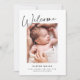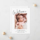 Este moderno, porém elegante design de anúncio de nascimento apresenta uma foto vertical, um belo roteiro de caligrafia e um clássico fundo branco. Você pode personalizar ainda mais este design, adicionando outra foto ou texto adicional no verso.