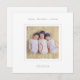 Anúncio de nascimento de Foto de Triplets Minimalistas Simples. Um design minimalista contemporâneo para anunciar o nascimento dos vossos trigêmeos. Basta substituir a foto de exemplo por sua própria de suas novas chegadas e personalizar facilmente o texto na frente e atrás. Para obter melhores resultados, recorte sua foto primeiro ao quadrado.