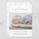 Um belo roteiro de caligrafia em folha de ouro falsa supera este anúncio elegante e simples de nascimento.