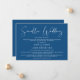 Se as circunstâncias exigirem que você reduza o número de convidados do seu casamento, você pode informar sua lista original de convidados com este anúncio de casamento reduzido, minimalista moderno e ainda assim elegante, na cor azul clássico. "Casamento Menor" é escrito em uma fonte branca arejada e estilosa e você pode personalizar facilmente a mensagem de casamento menor com mais detalhes e adicionar qualquer transmissão ao vivo da cerimônia, celebrações futuras e informações do site do casamento, tudo em uma tipografia branca simples e elegante contra o fundo azul.