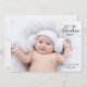 O anúncio de nascimento de uma foto de bebê moderna para uma menina ou um menino. Basta usar esta modelo para adicionar sua própria foto personalizada na frente da placa e adicionar nome, data e estatísticas de natalidade. Senha: deixe a aventura começar".
