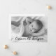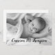 Personalizado com a foto do bebê na frente e mensagem especial, estatísticas de natalidade e sinal dos pais no verso. Este design usa uma fonte elegante com estilo de letra de escrita manual para o nome do bebê para um toque de sofisticação. Expresse sua entusiasmo de anunciar o nascimento do seu filho e envie sua gratidão ao mesmo tempo.