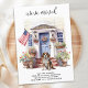 Anuncie sua mudança para a família e amigos com nosso anúncio patriótico e comovente com uma bela pintura aquosa de um cachorro Beagle, casa moderna com uma porta azul e a bandeira americana orgulhosamente exibida na varanda da frente. Este anúncio é perfeito para amantes de cães e qualquer um que queira anunciar seu novo endereço. Com seu esquema de cores vermelho, branco e azul, este anúncio é uma forma excelente de mostrar seu amor pelos EUA enquanto compartilha suas notícias emocionantes. Avise a todos que "nos mudamos!" e convide-os a visitarem-se e conhecerem o seu melhor amigo na sua nova casa. COPYRIGHT © 2023 Judy Burrows, Black Dog Art - Todos Os Direitos Reservados. Anúncio de Movimentação de Pet Personalizado Patriótico do Cão-Beagle