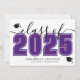 A classic yet modern horizontal graduation announcement. The front features an oversized “Class of” in bold black with “2025” in a rich purple tone for a bold, eye-catching contrast, accented by elegant gray script. Two graduation cap icons add a celebratory touch, with space below for the graduate’s name and school. Colors can be customized to match school colors or personal style for a fully personalized look.