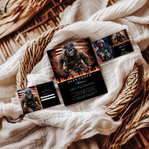 Celebrate a milestone with a design that captures power, grit, and unwavering determination. Featuring a dramatic firefighter illustration, blazing flames, and bold modern typography, this layout creates an unforgettable statement piece for any graduate stepping into their next chapter. Personalize the details to honor their journey, their strength, and the courage that defines them. A striking choice for anyone who wants a dramatic, impactful aesthetic with a touch of heroism.