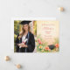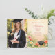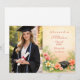 A soft parchment backdrop is framed by lush tropical greenery and coral hibiscus blooms, creating a fresh yet elegant celebration aesthetic. Delicate plumeria accents and airy palm leaves bring a warm, destination-inspired feel, while the classic typography keeps the layout refined and timeless. A subtle graduation cap detail grounds the design with just the right academic touch.