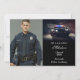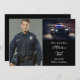 A strong and refined design created to honor a milestone built on discipline, courage, and dedication. This layout brings together a bold officer portrait with a dramatic patrol-car scene, framed in deep black for a powerful, polished look. Clean typography highlights the graduate’s name, class year, and academy for an announcement that feels confident, professional, and worthy of the moment. Ideal for celebrating new officers stepping proudly into their careers.