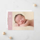 Este anúncio de nascimento moderno apresenta um monograma minimalista e uma grande foto na frente. O nome do cheio do seu bebê, a data de nascimento e as estatísticas de natalidade também estão na frente do cartão. Os detalhes do monograma e nascimentos são escritos em branco sobre fundo rosa bonito. A parte traseira do cartão inclui uma segunda foto e um espaço para escrever uma mensagem pessoal para a família e os amigos.