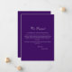 Este elegante cartão de anúncio de noivado branco e roxo apresenta um script moderno e texto limpo para um design roxo simples e na moda que você irá adorar. Adicione texto personalizado para fornecer qualquer informação adicional necessária para seus convidados. Sinta-se à vontade para me enviar mensagens com qualquer pergunta relacionada a design - terei todo o prazer em ajudar!