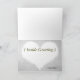 Personalize a sua própria placa de Noivado on-line com este design exclusivo da placa de saudação. Este será o precursor perfeito para o seu casamento. Avise a sua família e amigos que está noiva, enviando seu próprio cartão de saudação personalizado! Tanto a noiva como o noivo ficarão entusiasmados quando estes forem entregues à sua porta! Carregue sua própria foto de noivado para este design e parecerá que você fez isso profissionalmente; bem, eles são essencialmente. Este design apresenta uma janela em forma de coração na qual você pode colocar sua própria foto digital (foto) e uma borda lateral com padrão de renda. Este é um padrão cardíaco em tons de cinza no dentro no qual você pode digitar sua própria mensagem personalizada.