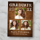 País russo temia 3 cartões de anúncio de graduação em fotos. Este design apresenta o estilo rústico da tipografia angustiada lendo "Formando", o ano de graduação, o nome da escola e, claro, o nome do formando. As fotos destacam o cartão e são acentuadas por um impressão de fundo de prancha de madeira de cor rica. A parte traseira do cartão oferece espaços de texto personalizados para informações sobre a sua graduação ou pode ser deixada em branco se você quiser enviar uma mensagem. Perfeito para segundos graus, formandos universitários e universitários.