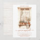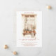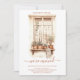 Anuncie sua nova casa aos amigos e familiares para que eles saibam que você se mudou para uma nova casa. Esta prateleira de escada em aquarela estilo boho terroso e quente com plantas e outros objetos de prateleira de casa, é quente e acolhedor, com plantas em vasos e tecidos. Personalize com o endereço da sua nova casa. O verso do anúncio apresenta um fundo de madeira rusticado e branco, com plantas em vasos e uma lanterna externa.