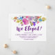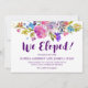Estes cartões de anúncio de jardim roxo de ameixa têm um belo design de tema floral. O design apresenta flores magenta, rosa, roxo de ameixa e azuis brilhantes, e uma bela fonte de escrita em negrito. Na frente do cartão lê-se "Eloped!". Personalize a coroa floral, apoiando-a com um monograma inicial do novo sr. e mrs. Desenhado com o Care por Miriam na Fresca e Iummy Paperie. Para coordenar itens, visite minha loja Zazzle: