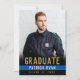 Anuncie sua formatura na academia de polícia em estilo com este simples mas elegante anúncio de formatura em linha azul e convite para festas combinados. Este design apresenta uma foto na frente com as palavras "Formando" em tipografia dourada, seu nome em branco em uma faixa fina e azul e classe com ano abaixo para personalizar.O verso da placa tem mais detalhes de graduação com convite de festas acentuado por uma coroa falsa de ouro com seu monograma inicial no centro. Escolha de excelente para os que se formam na academia de polícia e na polícia. Desenhado pela artista ©Susan Coffey.