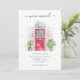 Uma mudança de endereço para a família de amigos saber onde você está e onde a próxima festa de inauguração está. O design apresenta uma porta frontal de cor d'água vermelha e um número de casa que você pode alterar clicando no botão "Personalizar" acima. Adicione uma mensagem especial e seus novos detalhes de endereço na frente da placa para substituir os textos de marcadores de posição na tipografia moderna e de script.