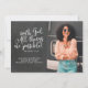 Um moderno cartão de anúncio da formatura cristã, com o verso Bíblia Matthew 19:26 "Com Deus, todas as coisas são possíveis" em letra branca e moderna, em fundo de quadro, ao lado de uma fotografia do formando. Personalize com detalhes de graduação em fontes brancas sans serif.
