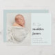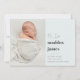 O cartão de anúncio de nascimento mínimo moderno em neutrais legal apresenta uma foto vertical ou orientada para retratos alinhada à direita com "Oi, eu sou [Nome]" ao lado. Personalize com a data de nascimento do bebê, estatísticas e uma assinatura familiar, e adicione três fotos quadradas adicionais às costas.