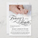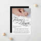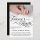 Anúncio do memorial do bebê que você pode personalizar com uma foto. Para sempre em nossos corações escritos em uma escrita negra. Adicione o nome do anjo e as estatísticas de natalidade, juntamente com informações sobre um serviço. Nas costas você pode adicionar uma oração ou poema para honrar seu querido anjo.