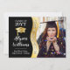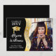 Comemore seu mais velho de graduação favorito com este design de fotos "Formando" de tom preto e dourado. O modelo apresenta uma visão ondulada do lado esquerdo com a palavra "Formando" no fundo ondulado dourado, acompanhada por um boné de formatura dourado à esquerda e ao ano de aula do formando, nome e escola de branco. Ilustração original e design por Designs Holiday Hearts (direitos reservados) com o crédito de foto marcador para Logan Isbell via Unsplash.