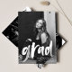 Cartões de agradecimentos de graduação moderno com a foto do formando com "formando" em uma cobertura de script de pincel branco. Personalize a frente do cartões de agradecimentos de graduação adicionando o nome do formando, a escola, o nome e o ano de graduação. A parte traseira da placa apresenta espaço para a sua mensagem escrita à mão ou digitada com um fundo de pincéis pretos pintados.