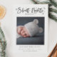 Cartão de nascimento multigráfico com texto tipográfico no topo que diz "noites silenciosas, principalmente..." Você pode adicionar sua foto de recém-nascido sob ela. Você também pode adicionar mais 3 fotos na parte traseira do cartão e estatísticas de natalidade na parte inferior. Excelente para rapazes e raparigas.