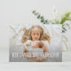 Vintage e elegante cartão de nascimento de Natal com texto tipográfico misturado com guião e letra serif que diz "quanto mais melhor". Este é um cartão de anúncio de nascimento para as férias! Adicione suas fotos, estatísticas de natalidade e uma mensagem!