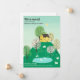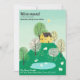 Ótima e adorável ilustração de uma casa amarela-country no topo da colina com muitas ervas verdes, árvores e um lago próximo com cisnes, cercado por ovelhas prateadas. A parte de trás do cartão apresenta sua mensagem personalizável para sua família e amigos, em tipografia carvânica.